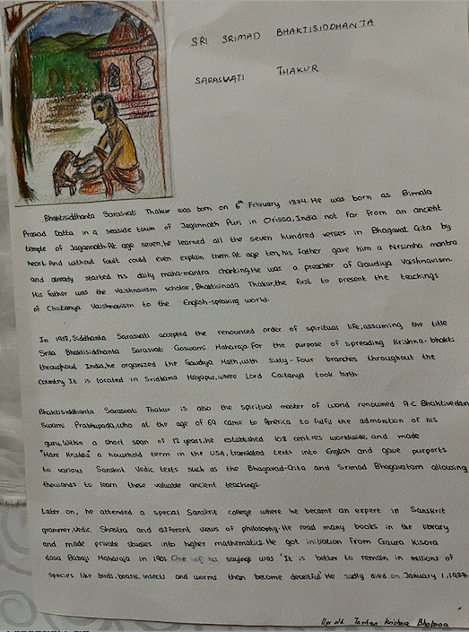 In February 2024 on the auspicious appearance day of Bhaktisiddhanta Saraswati Thakur (Spiritual Master of Srila Prabhupada), essay writing competitions and drawing competitions were held for Gurukul kids of different age groups at Sri Sri Krishna Balaram Mandir.